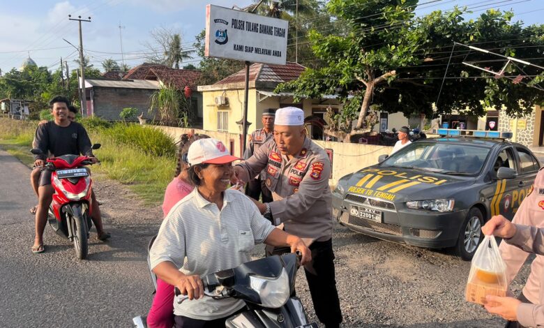Kapolsek Tulang Bawang Tengah Pimpin Bagi Bagi Takjil di Bulan Ramadhan