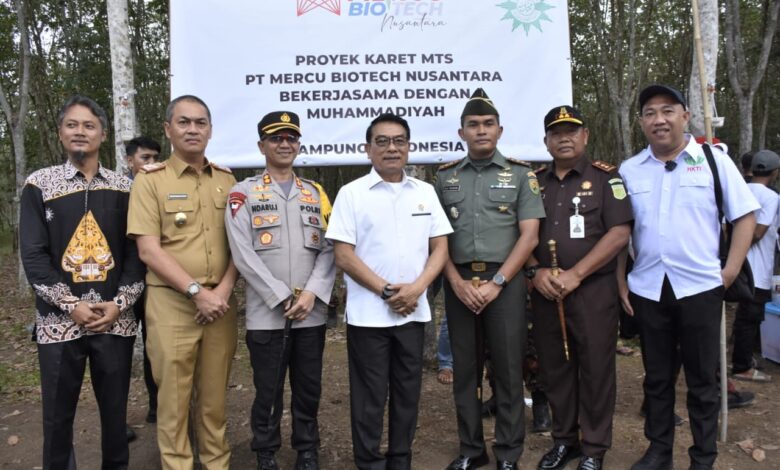 Tulang Bawang Barat ,MBL– Kunjungan Kepala Staff Kepresidenan Republik Indonesia, Bapak Jenderal TNI (Purn.) Dr. H. Moeldoko dalam rangka meninjau uji coba teknologi sadap karet dari Mercu Group Malaysia bekerjasama dengan Muhammadiyah Prov. Lampung bertempat di Kebon Karet Opal Nenemo Komplek Uluan Nughik Tiyuh (Desa) Panaragan Kec.Tulang Bawang Tengah Kab. Tulang Bawang Barat, Senin (13/05/2024) siang.