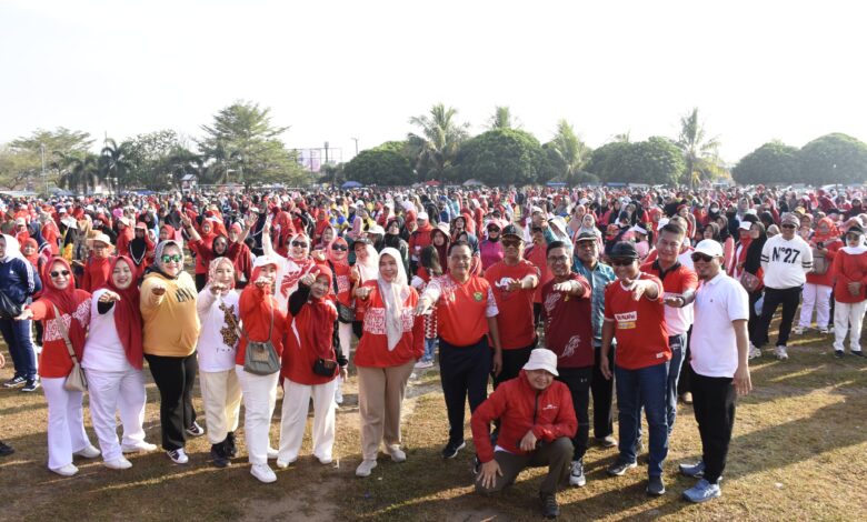 Antusias Masyarakat Ikuti Jalan Sehat Dan Senam Bersama Yang Di Gelar Pemkab Tubaba