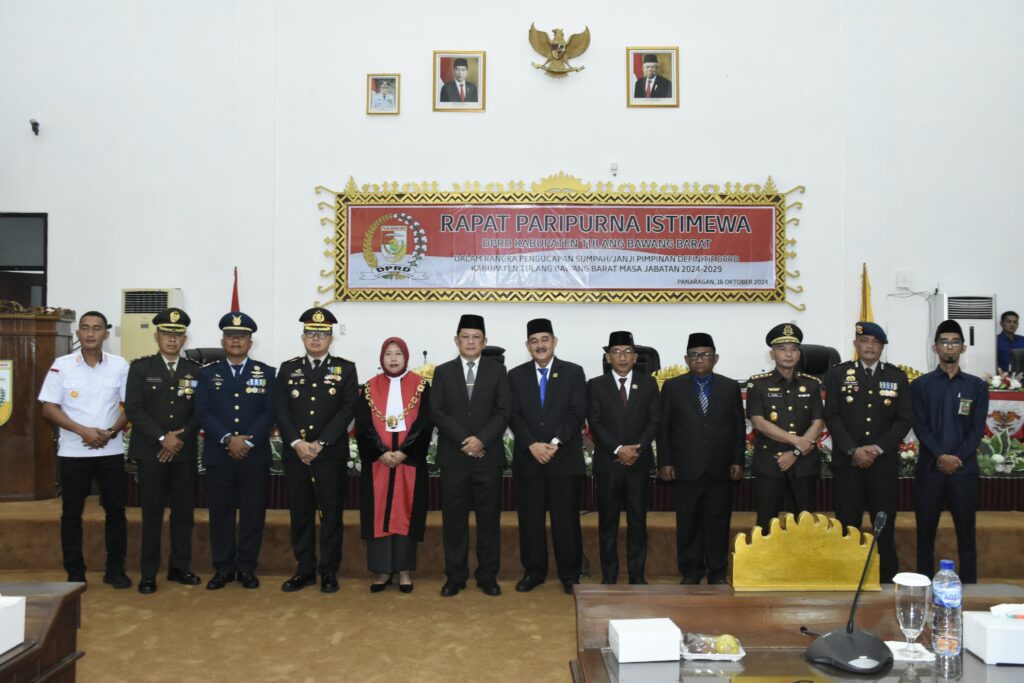 Tulang Bawang Barat, Mediaberitalampung.co.id- Dewan perwakilan rakyat daerah kabupaten tulang bawang barat menggelar rapat paripurna istimewa pengucapan sumpah janji pimpinan definitif DPRD kabupaten tulang bawang barat masa jabatan 2024-2029, Yang berlangsung di ruang rapat paripurna DPRD setempat, Rabu (16/10/2024).
