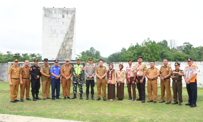 Saat melakukan peninjauan Pj Bupati Firsada didampingi oleh Kadis Kesehatan, Kadis Perhubungan, Kadis Kominfo, Kasat Pol PP, Kadis Damkar, Kepala Kesbangpol, Kepala BPBD.(Ren)
