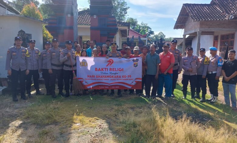 Tulang Bawang Barat ,Mediaberitalampung.co.id- Dalam rangka menyambut Hari Bhayangkara Polri ke-79, jajaran Polsek Tulang Bawang Tengah, Polres Tubaba, Polda Lampung melaksanakan kegiatan Bhakti Religi yang digelar di Masjid Baitul Huda, Pura Dharma Agung, Gereja injili di tanah Jawa (GITJ) Tiyuh Tirta Makmur Kec. Tulang Bawang Tengah Kab. Tulang Bawang Barat, Rabu (17/06/2026) Pagi