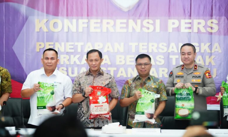 Jakarta, Mediaberitalampung.co.id– Satgas Pangan Polri menetapkan tiga pejabat dari perusahaan produsen beras PT FS sebagai tersangka dalam kasus produksi dan peredaran beras yang tidak sesuai dengan standar mutu nasional. Penetapan tersangka ini diumumkan dalam konferensi pers yang digelar di Mabes Polri, Jumat (1/8), dan dipimpin langsung oleh Direktur Tindak Pidana Ekonomi Khusus Bareskrim Polri, Brigadir Jenderal Polisi Helfi Assegaf, selaku Kasatgas Pangan Polri.