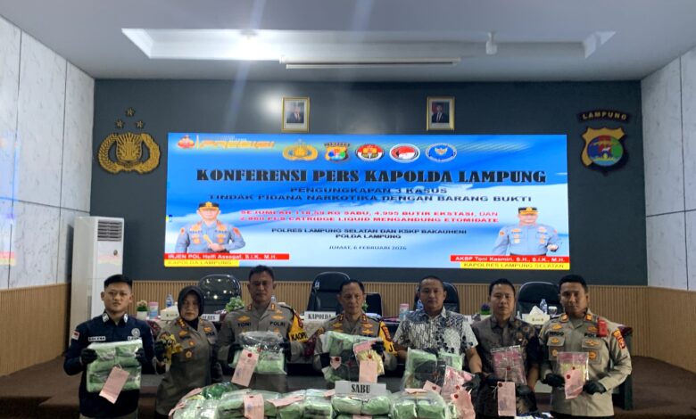 Bandar Lampung — Kepolisian Daerah Lampung melalui Direktorat Reserse Narkoba bersama Satresnarkoba Polres Lampung Selatan dan Polsek KSKP Bakauheni berhasil mengungkap jaringan peredaran narkotika lintas provinsi dengan barang bukti dalam jumlah besar.