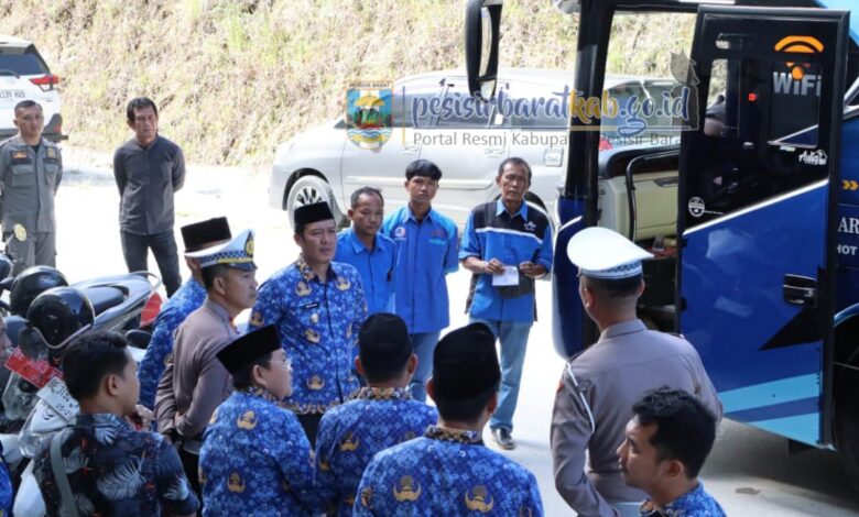 Pesisir Barat (MBL)– Bupati dan Wakil Bupati Pesisir Barat (Pesibar), Dedi Irawan-Irawan Topani, S.H., M.Kn., meninjau langsung kesiapan dua unit bus yang akan membawa keberangkatan rombongan Calon Jamaah Haji (CJH) asal Pesibar, Selasa (20/5/2025). Dijadwalkan Bupati dan Wakil Bupati, Dedi Irawan dan Irawan Topani, akan melepas keberangkatan CJH asal Pesibar dari Komplek Perkantoran Pemkab Pesibar, Rabu (21/5/2025) subuh. Tampak ikut…