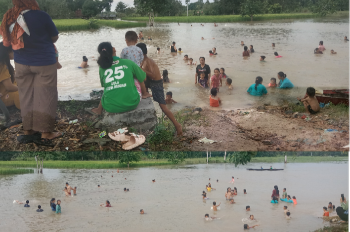 Meluapnya Air Way Kiri Tiyuh Penumangan Dijadikan Warga Tempat Wisata