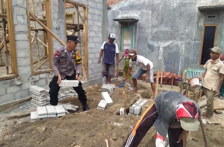 Peduli Tempat Ibadah, Bhabinkamtibmas Wonokerto Membatu Warga Yang Sedang Membangun Mushola