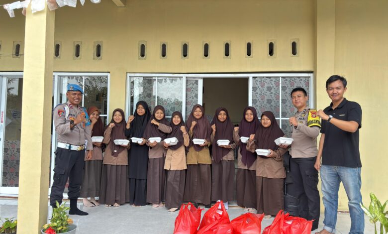 Jumat Berkah, Polsek Lambu Kibang Bagikan Nasi Kotak kepada Santri Pondok Pesantren Nurul Kirom