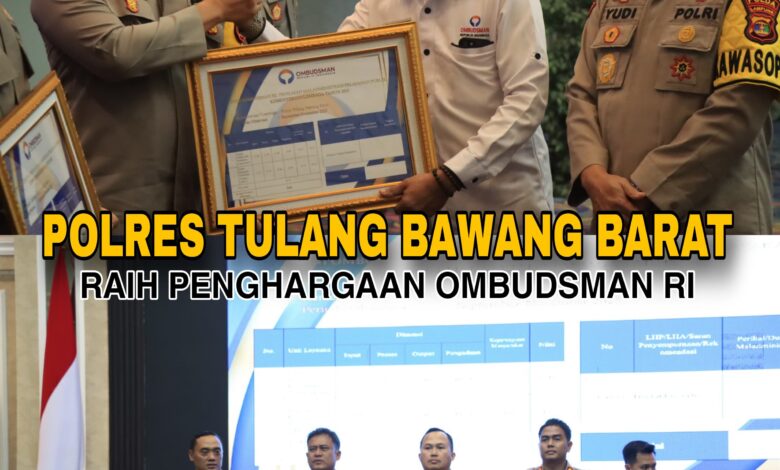 Polres Tulang Bawang Barat Terima Penghargaan dari Ombudsman RI atas Pelayanan Publik