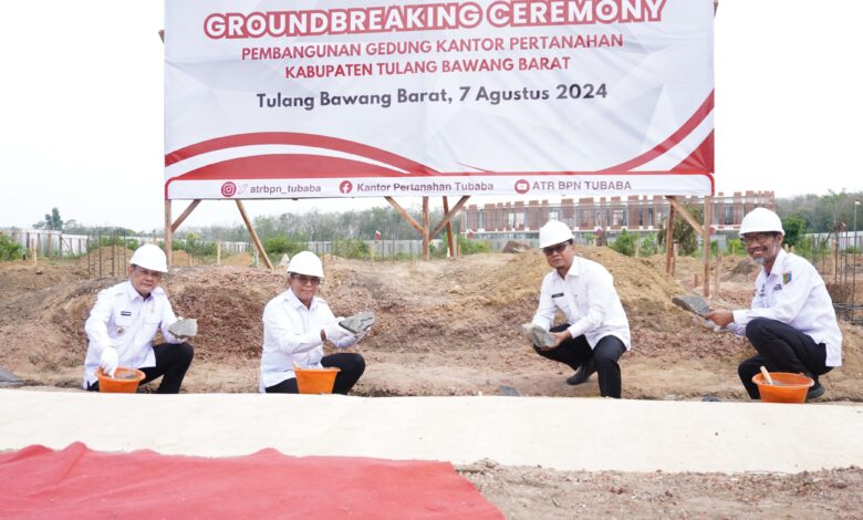 Tulang bawang barat, MBL- Penjabat (PJ) Bupati Tulang Bawang Barat, Drs. M. Firsada, M.Si., diwakili Staf Ahli Bupati Bidang Pemerintahan, Hukum dan Politik, Untung Budiono, S.Sos., M.H., melakukan Peletakan Batu Pertama (Groundbreaking Ceremony) Pembangunan Gedung Kantor Badan Pertanahan Nasional (BPN) Kabupaten Tubaba, di Tiyuh Pulung Kencana. Rabu (07/08/2024). Membacakan sambutan PJ Bupati, Untung Budiono mengatakan pembangunan kantor pertanahan di Tubaba…