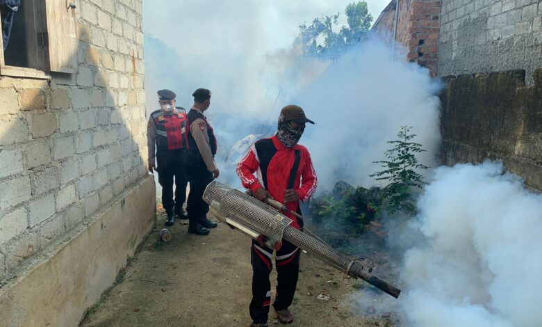 Kapolsek Tulang Bawang Tengah Pimpin Pelaksanaan Fogging Bersama Tim Puskesmas di Wilayah Kelurahan Mulya asri