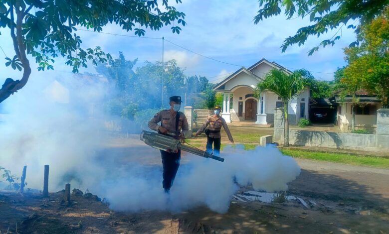 Tanggapi Keluhan Warga Terkait DBD, Sat Samapta Polres Tulang Bawang Barat Lakukan Fogging di SDN 18 Tulang Bawang Tengah