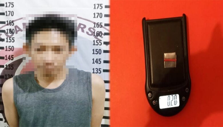 MBL, TULANG BAWANG- Pelaku tindak pidana penyalahgunaan narkotika jenis sabu ditangkap petugas dari Satuan Reserse Narkoba (Satresnarkoba) Polres Tulang Bawang, Polda Lampung, saat akan bertransaksi. Pelaku yang ditangkap ini seorang pria berinisial FI (34), berprofesi wiraswasta, warga Kelurahan Menggala Kota, Kecamatan Menggala, Kabupaten Tulang Bawang. “Hari Minggu (23/07/2023), sekitar pukul 20.00 WIB, petugas kami menangkap pelaku penyalahgunaan narkotika jenis sabu.…
