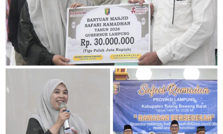 Tulang Bawang Barat — Pemerintah Provinsi Lampung melaksanakan kegiatan Safari Ramadan di Masjid Al Amin Pulung Kencana, dengan mengusung tema “Ramadan Bersedekah” sebagai momentum mempererat silaturahmi antara pemerintah daerah dan masyarakat serta meningkatkan kepedulian sosial di bulan suci Ramadan, Senin (23/2/2026). Kegiatan tersebut dihadiri oleh Ketua DPRD Provinsi Lampung yang diwakili Wakil Ketua III DPRD Provinsi Lampung, Maulidah Zauroh, M.A.Pd,…